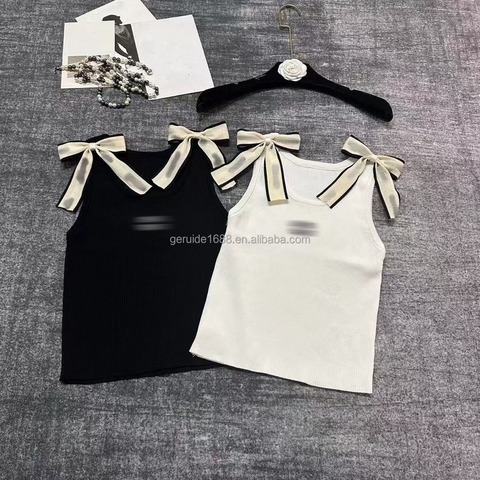 Groothandel Designerkleding Zomer Zwart Mouwloos Crop Top Modemerk Strik Steentjes Gebreide Tanktop Dames