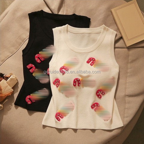 Groothandel Designer Kleding Zomer Mouwloos Gebreide Geribbelde Crop Top Borduurwerk Modemerk Tanktop Vrouwen