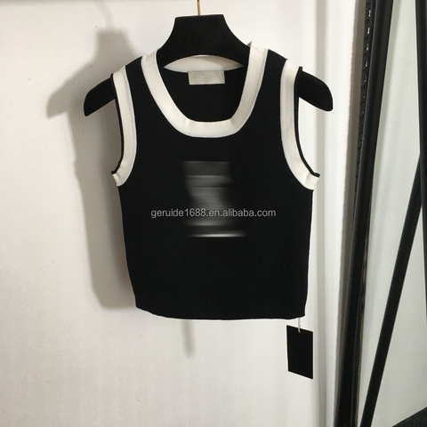 Groothandel Designerkleding Zomer Mouwloos Borduurwerk Crop Top Zwart Modemerk Gebreide Tanktop Vrouwen